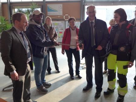 Es folgte ein kleiner Rundgang durch die Gemeinde mit einer Zwischenstation auf der Wilhelmshöhe. Wölfle nutzte auch diese Gelegenheit, um mit einzelnen Gemeinderäten zu sprechen. Beim Besuch des Bauhofes der 1.400-Einwohner-Gemeinde zeigten Hofleiter Roland Widder und seine Mannschaft, was der Bauhof alles macht und kann. „Offenkundig haben die Hagnauer hier ein gutes und sehr kompetentes Team“, zeigte sich der Landrat beeindruckt. Ob die Pflege der Grünanlagen, Instandhaltung der Wege oder das Kümmern um verstopfte Gullys – die Arbeit des Bauhofes sei für die Bürger und Gäste unmittelbar zu greifen und trage daher viel zur Lebensqualität der Menschen vor Ort bei, so der Landrat. „Vorbildlich“ nannte es Wölfle auch, dass der aus Nigeria geflohene Francis Chibueze für einige Monate in das Team des Bauhofs integriert wurde, um hier tatkräftig mitzuarbeiten.