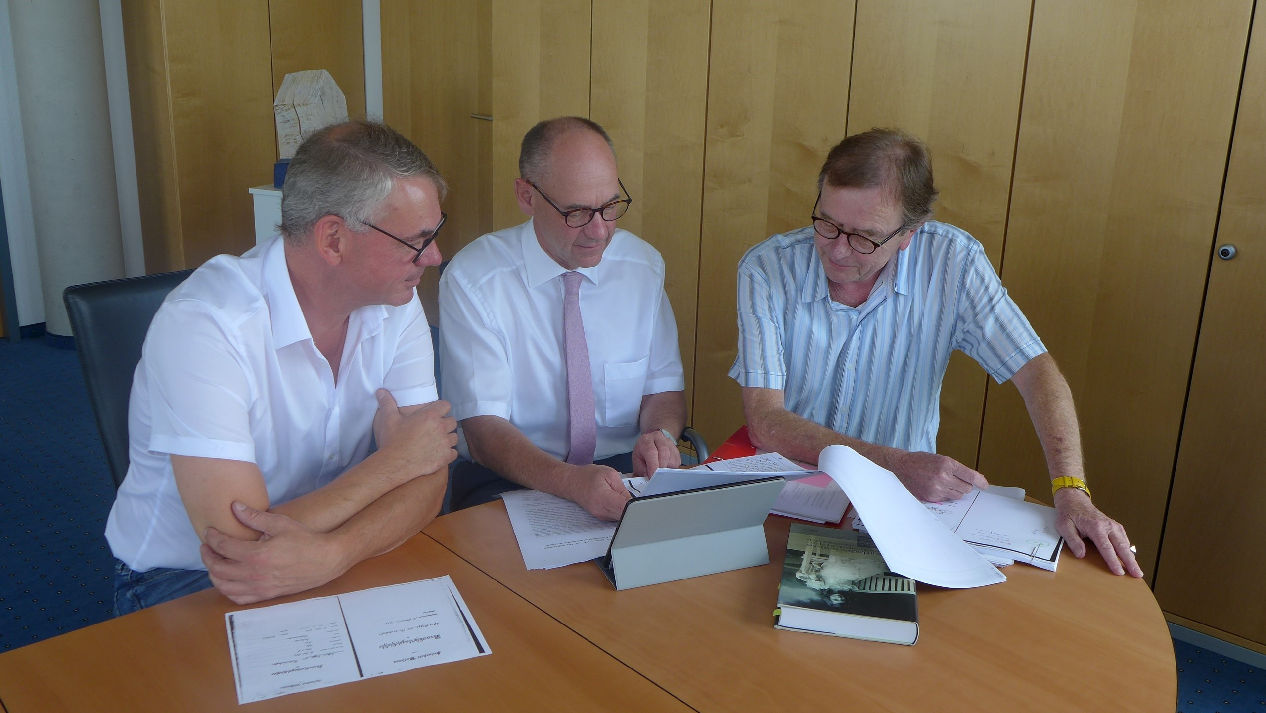 Bildinfo: Dr. Stefan Feucht vom Kulturamt, Landrat Lothar Wölfle und der Forscher Professor Paul-Otto Schmidt-Michel wollen mehr Licht in das Kapitel der sogenannten „Euthanasie“ in der Bodenseeregion bringen. Auf einer Website kann jeder nachlesen, was damals den Opfern widerfahren ist.