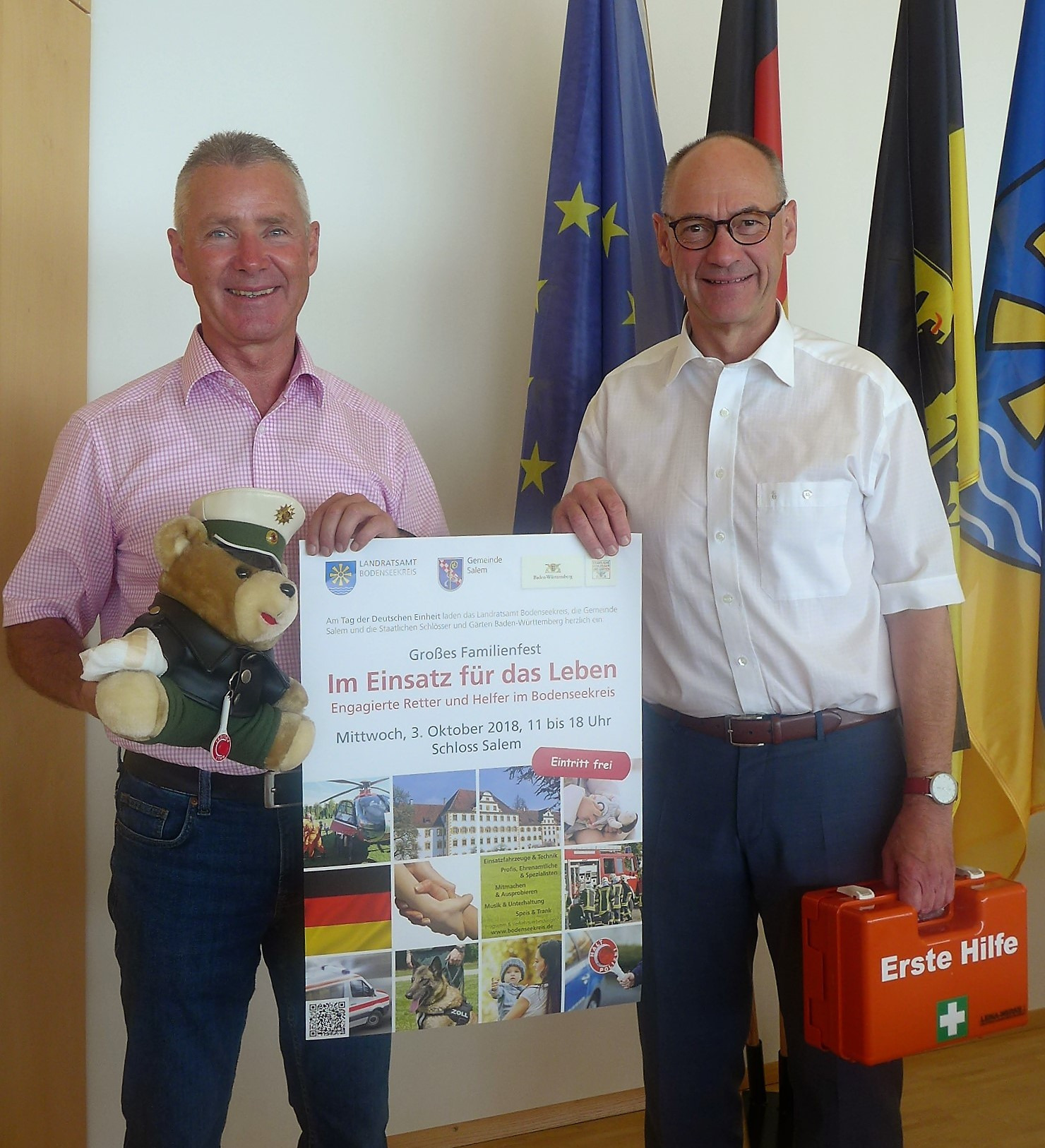 Anerkennung für Retter und Helfer: Bürgermeister Manfred Härle und Landrat Lothar Wölfle laden die Bewohner und Besucher des Bodenseekreises am 3. Oktober 2018 zum Kreisfamilienfest in Schloss Salem ein.