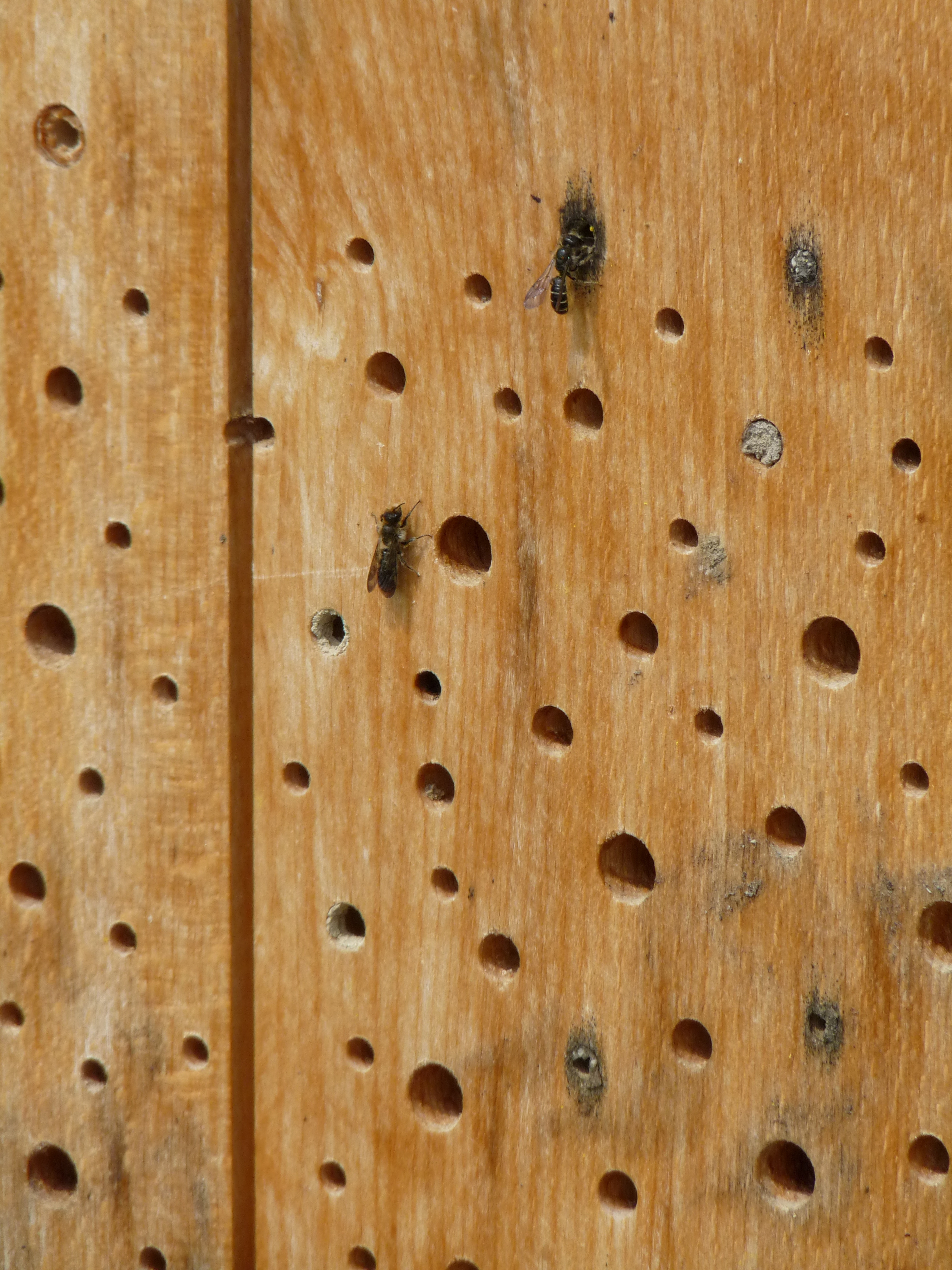 Bereits bewohnte Wildbienen-Nisthilfe (aufgenommen bei Sipplingen).