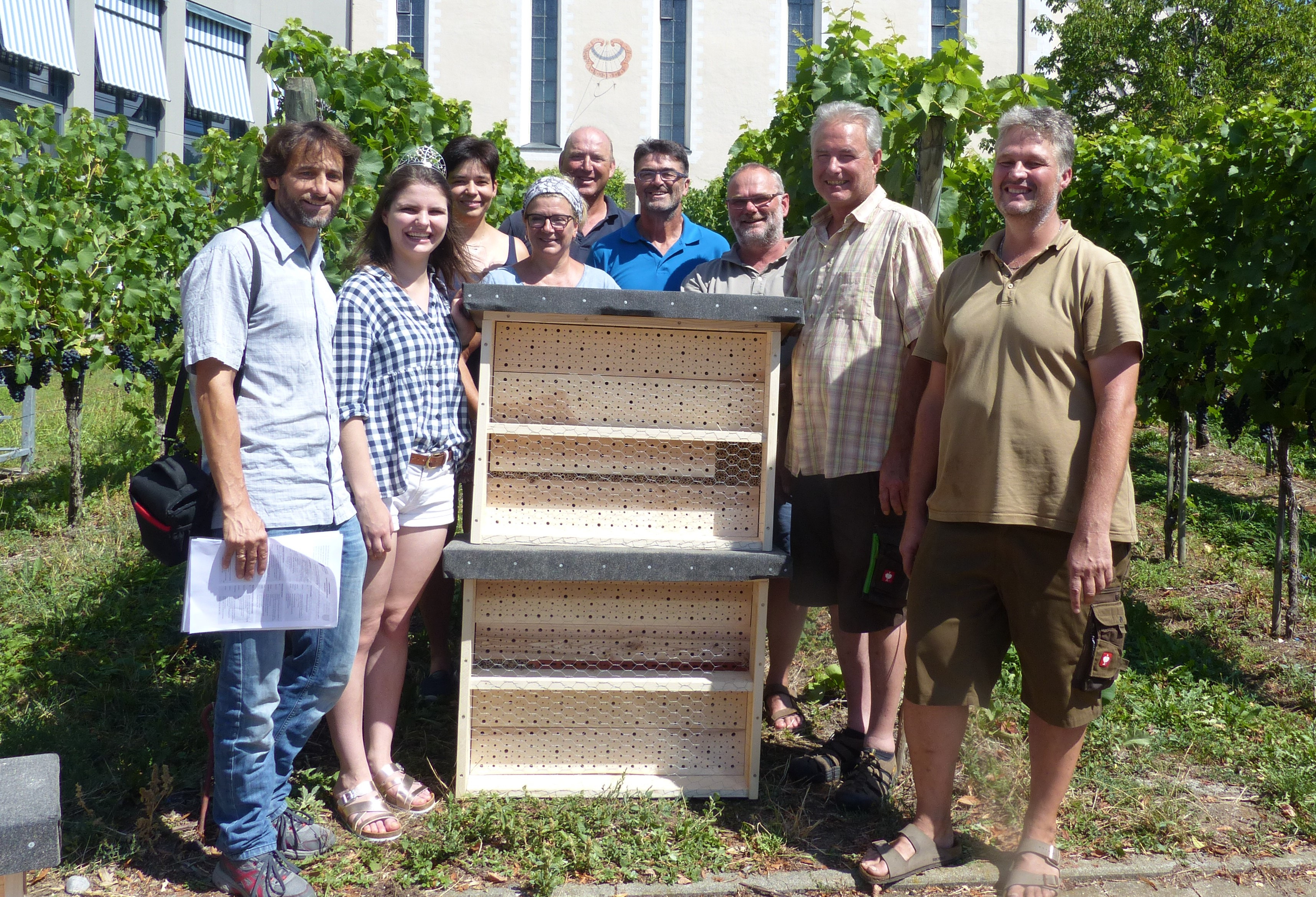 Bienenfreunde (v.l.): Gerd Odenwälder vom Umweltschutzamt, Bodenseeweinprinzessin Stephanie Megerle, Andrea Knoblauch, Elisabeth Leiss, Albert Staneker, Hubert Gutemann, Richard Ganser, Karl Megerle und Wilfried Hund vom Winzerverein Hagnau.