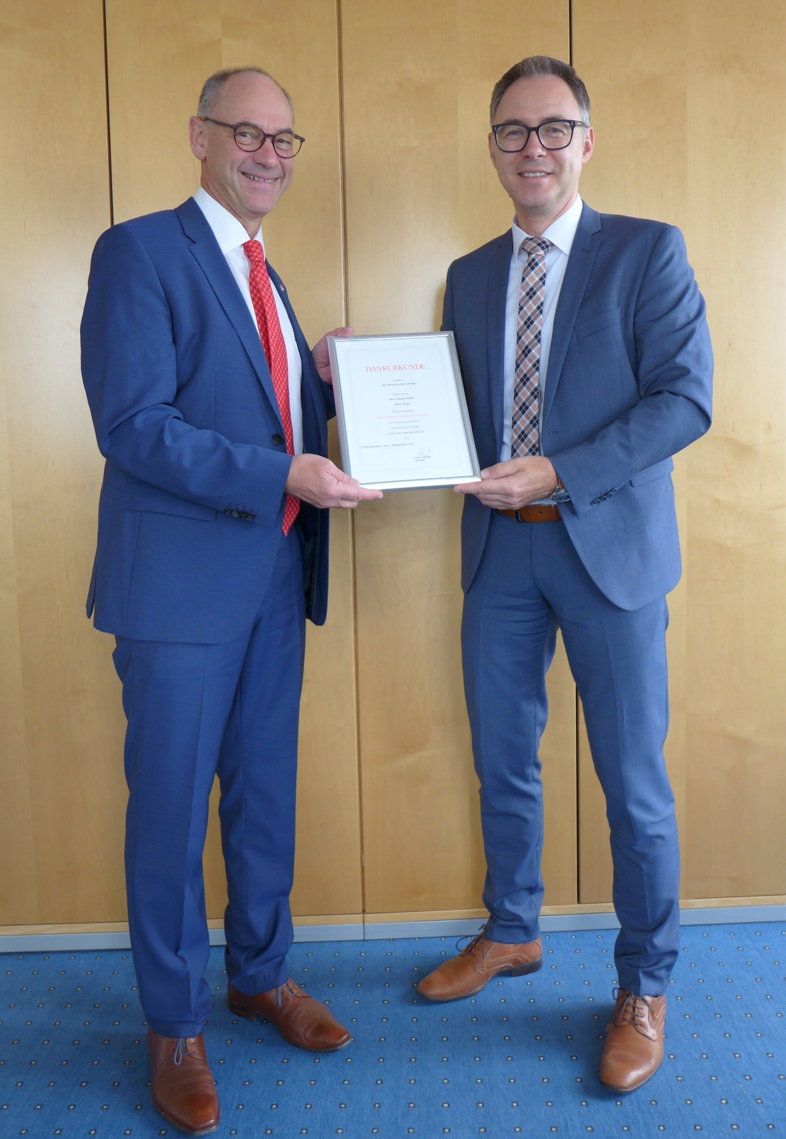 Bermatingens Bürgermeister Martin Rupp hat für 25 Jahre im Öffentlichen Dienst eine Dankesurkunde erhalten. Landrat Lothar Wölfle überreichte Rupp das Dokument am 3. September 2018 im Landratsamt. Rupp ist seit 2001 Bürgermeister der Gemeinde Bermatingen. Zuvor war er Kämmerer der Gemeinde Kirchheim am Neckar. Seinen Werdegang im Öffentlichen Dienst begann der heute 47-jährige 1994 mit einer Ausbildung im gehobenen Verwaltungsdienst.