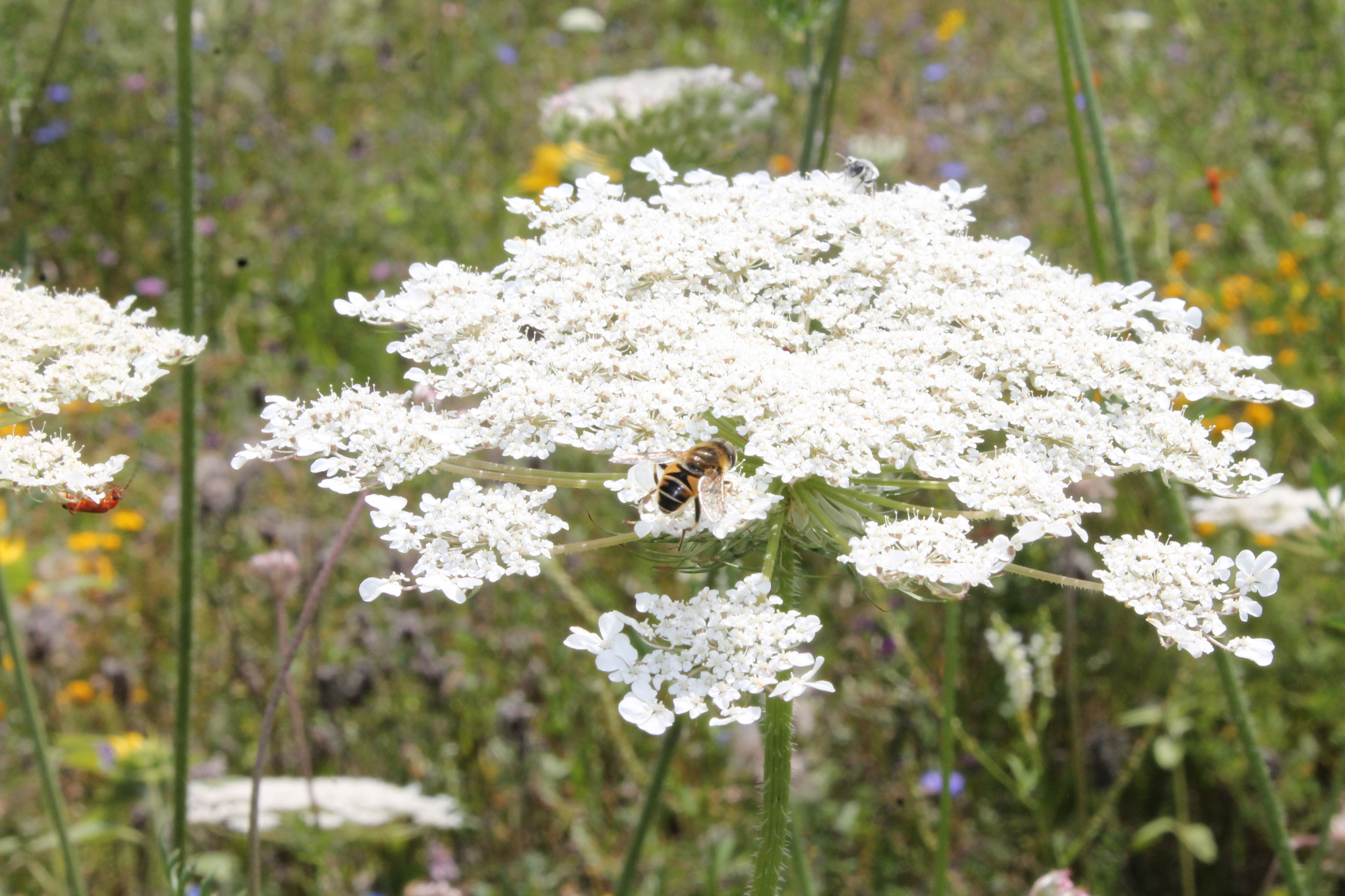 Bildinfo: Blühstreifen bieten Insekten ein wichtiges Nahrungsangebot. Zudem sind sie für Vögel und andere Tiere eine Nahrungs-, Fortpflanzungs- und Rückzugsmöglichkeit. Auch darunter lebende Insekten leisten einen erheblichen Beitrag zur biologischen Schädlingsbekämpfung. Foto: Landschaftserhaltungsverband Bodenseekreis e. V.