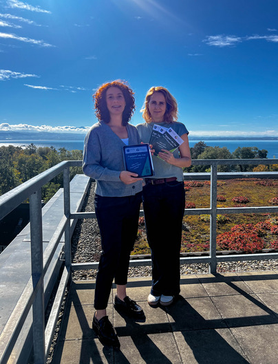 Bildinfo: Nadja Gauß und Miriam Moll von der Servicestelle für bürgerschaftliches Engagement machen auf das neue Ehrenamts-Fortbildungsprogramm aufmerksam. Foto: Landratsamt Bodenseekreis