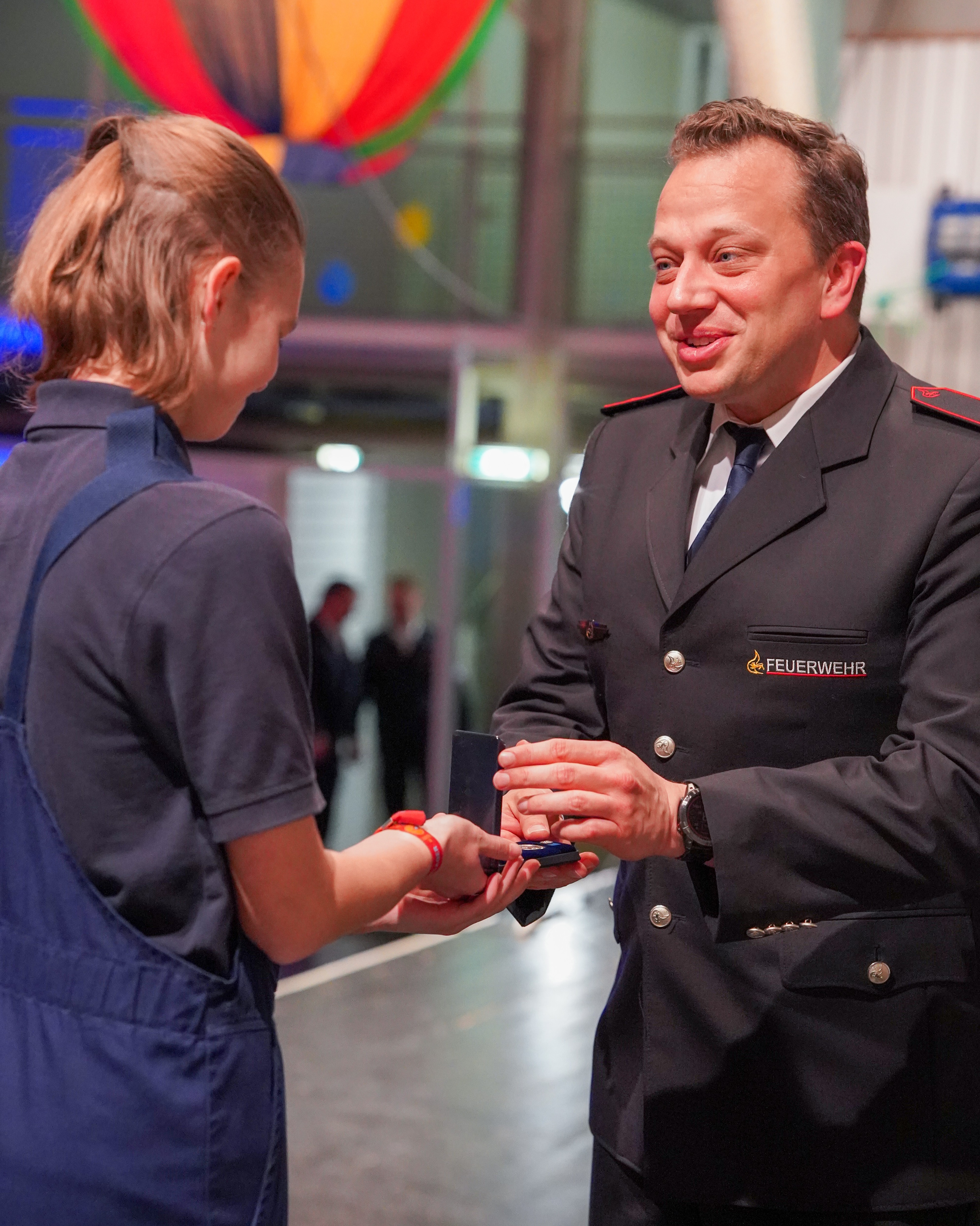 Bildinfo: Mitglieder der Jugendabteilungen von Feuerwehr und THW haben die Medaillen an die Einsatzkräfte überreicht. (Foto: Kreisfeuerwehrverband Bodenseekreis)