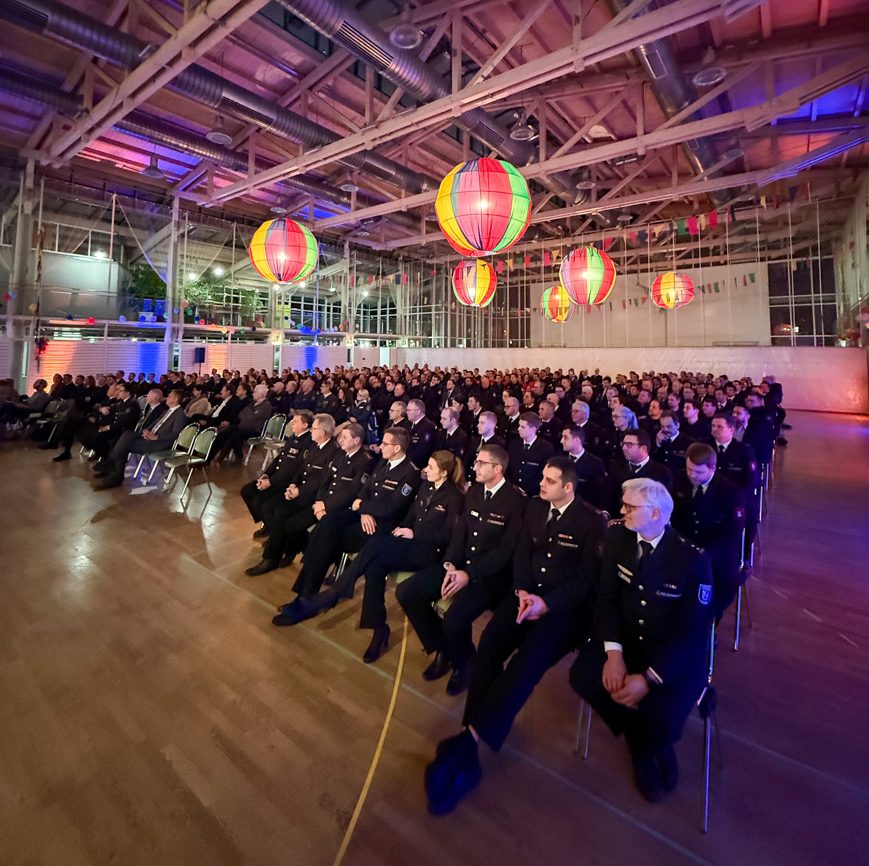 Rund 250 Einsatzkräfte waren der Einladung des Landrats in die Ludwig-Roos-Halle in Friedrichshafen-Ettenkirch gefolgt. Sie gehören den Feuerwehren Eriskirch, Friedrichshafen, Kressbronn, Meckenbeuren, Oberteuringen, Salem, Sipplingen, Tettnang und der Werkfeuerwehr ZF sowie den THW-Ortsverbänden Friedrichshafen und Überlingen, der DLRG Bodenseekreis und dem Führungsstab der Rettungskräfte im Landkreis an. Der Landrat wies in seiner Ansprache vor rund 300 Gästen darauf hin, dass der überwiegende Teil der Einsatzkräfte ehrenamtlich arbeitet und in der Freizeit die eigene Gesundheit und manchmal sogar das Leben einsetzt, um anderen zu helfen. In sehr persönlichen Worten bedankte er sich dafür und spannte den Bogen zur aktuellen Zeit: