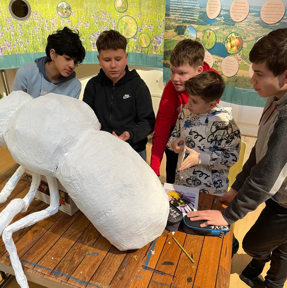 Die Ausstellung wurde vom Team des Naturschutzschutzzentrums selbst konzipiert, erstellt und gebaut. Schüler der Outdoor-Klasse 6a der Gemeinschaftsschule Manzenberg in