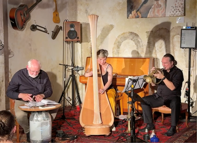 Bildinfo: V.l.: Martin Oswald, Maja Taube und Michael T. Otto verbinden unter dem Label TOO (Taube, Otto & Oswald) Musik und Literatur zu einem vielschichtigen Dialog. Foto: Michael T. Otto