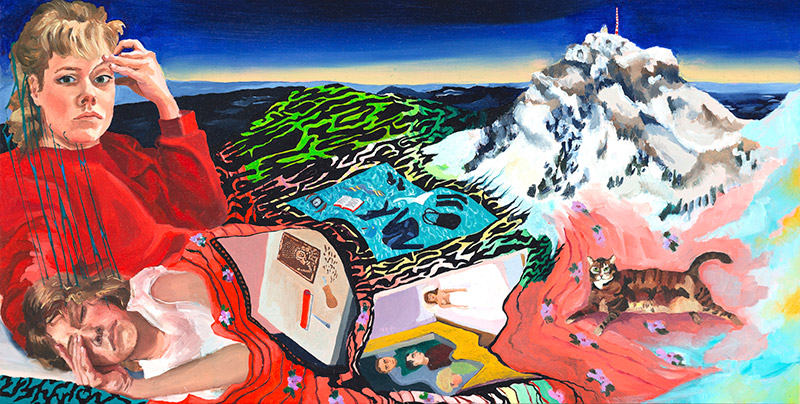 Mein künstlerischer Ansatz ist erzählerisch. Im Unterschied zu den großen Gemälden aus anderen Zeiten male ich keine berühmten Geschichten oder Persönlichkeiten. Durch Verschlüsselung und den Einsatz von Symbolen entferne ich mich von der spezifischen Idee. Ich möchte, dass meine Geschichten in ihrer abstrahierten Form für jede und jeden zugänglich sind. Ich greife dabei auf die mir bekannten symbolischen Objekte oder Positionen aus der westlichen Kunstgeschichte zurück, deute sie um, manchmal erfinde ich sie neu. So finde ich Bilder für Ideen und innere Prozesse und setze sie als Bildgegenstand in real anmutende Räume ein. Die Grenzen zwischen innen und außen verschwimmen, das Bild wird Projektionsfläche für eigene Gedanken und Erinnerungen.