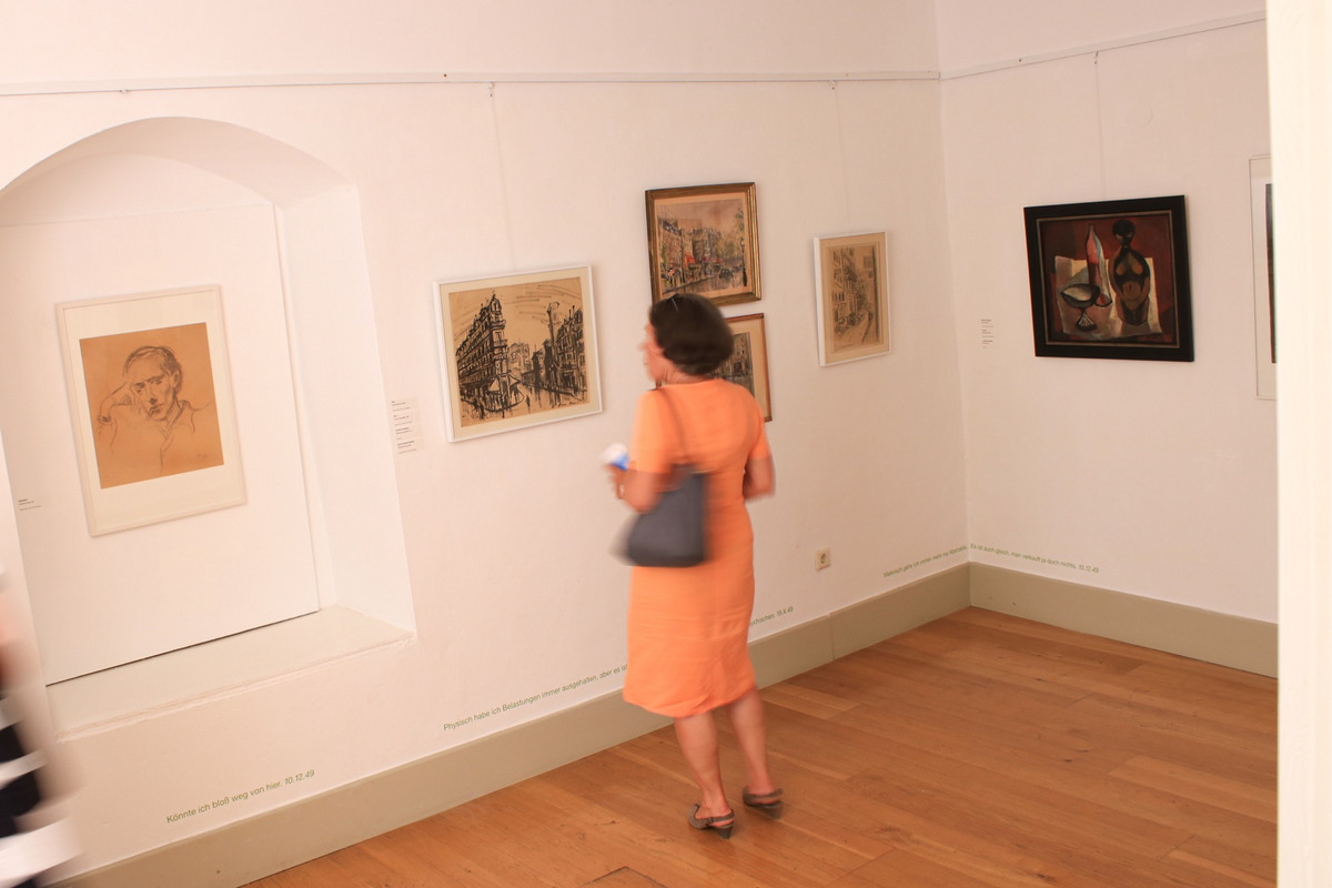 Diese Episode, die André Ficus gerne erzählte, spiegelt das Lebensthema des Friedrichshafener Malers wider. Der gebürtige Berliner, der 1946 an den Bodensee kam, haderte als Großstadtmensch lange mit seinem Wohnort – vielleicht Zeit seines Lebens. Dass André Ficus sich eigentlich ein anderes Leben gewünscht hätte, macht die Ausstellung im Roten Haus Meersburg deutlich.