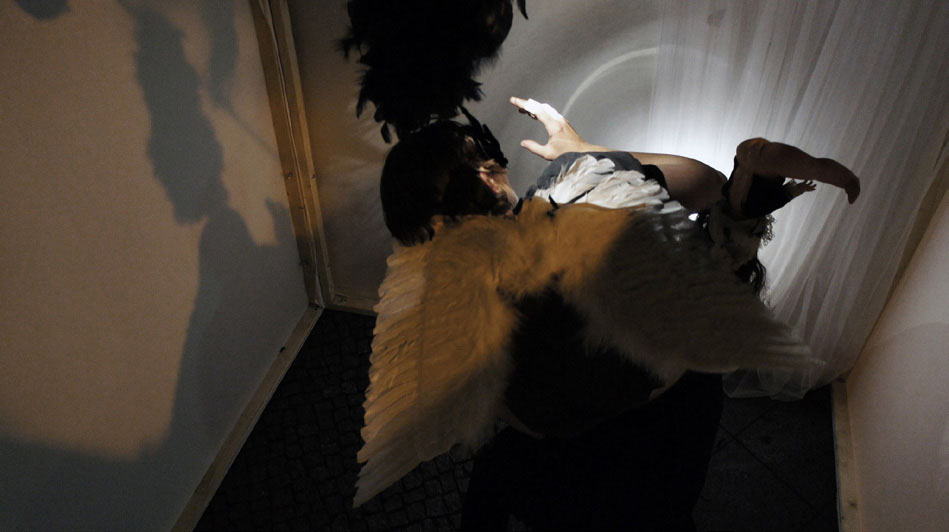 Centered in afro-brazilian art and ritual Capoeira Angola (ECAAM, Mestre China) she is not identifying herself with one media, but connecting music (singing, percussion as berimbau, pandeiro), dance and theatre. By actually teaching and studying Capoeira, acting solo (as at Month of Performance, Berlin 2014) being part of an international performance duo (with Hila gross, Tel Aviv) and music trio (3naRua – Electro Brasil Beat) she is pushing international and transdiciplinary boundaries further. Her main topics are culture and ritual, freedom and fight – rooted in spiritual essence, expressing in street art and momentaneous happenings.