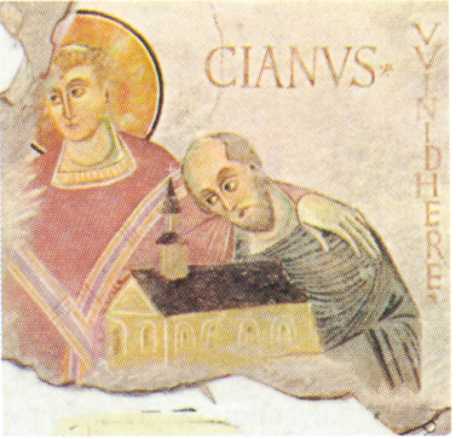 Winidhere überreicht, empfohlen vom Hl. Marcianus, dem thronenden Christus ein Kirchenmodell. Das Fragment einer Wandmalerei des frühen 10. Jahrhunderts in der Kapelle Goldbach zeigt uns als Stifter wohl einer Kapellenerweiterung einen begüterten alemannischen Adligen und ist die erste bildliche Darstellung eines »Kreisbewohners«. Zu seinen Lebzeiten siedeln die Alemannen schon mindestens vier Jahrhunderte am See. Spuren menschlicher Niederlassungen reichen freilich sechs Jahrtausende weiter zurück bis in die Mittelsteinzeit. Bekannt sind die »Pfahlbauten«, Uferrandsiedlungen der Jungstein- und Bronzezeit. Die Römer legen eine Straße am See entlang an und bauen verstreute Villen. Vor dem Ansturm der Alemannen ziehen sie sich im 4. Jahrhundert zurück.