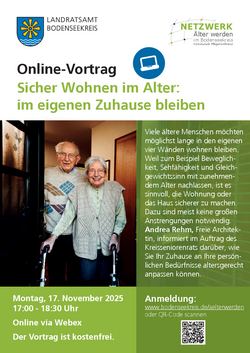 Zusätzlich zu den Vorträgen vor Ort bietet das Netzwerk Älter werden im Bodenseekreis auch Online-Vorträge an.