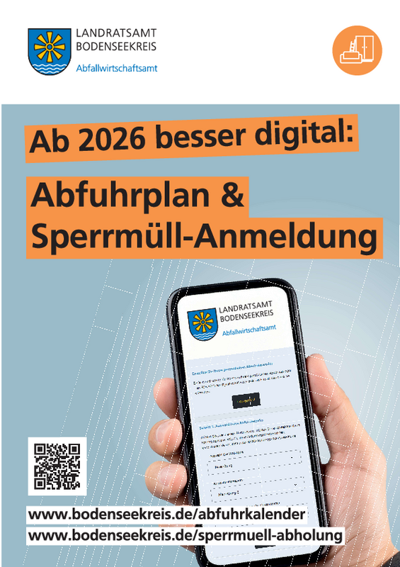 Ab etwa Mitte Dezember können auch weiterhin gedruckte Abfuhrkalender in den Rathäusern oder Bürgerbüros sowie auf den Wertstoffhöfen und Entsorgungszentren des Bodenseekreises abgeholt werden.