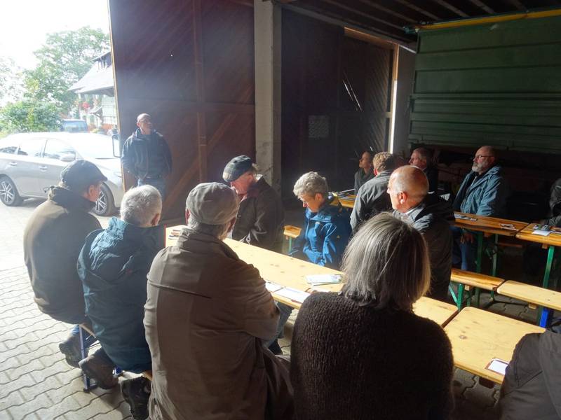 „Hier bei mir in der Nachbarschaft und auch bei vielen Kooperationspartnern ist der Gewinn des Preises noch gar nicht richtig bekannt“ erläutert Thomas Müller und fährt fort: „Daher habe ich gerne dieses Hoffest ausgerichtet, um gemeinsam den Landschaftspflegepreis zu feiern“. Auf dem weitläufigen Hof sind viele von den Spezialgeräten ausgestellt, die sich der versierte Praktiker im Laufe der Jahre angeschafft oder die er selbst entworfen hat: vom Brielmaier-Motormäher über den Forstmulcher am Schlepper mit Zwillingsbereifung und den neu gebauten Seitenbandschwader am Ausleger, mit dem auch steile Grabenböschungen gemäht und abgeräumt werden können, bis hin zur halbautomatischen Schleifmaschine für die großen Messerbalken. Durch solche innovativen Ansätze und Mut zur Spezialisierung pflegt Thomas Müller schonend die Kulturlandschaft.
