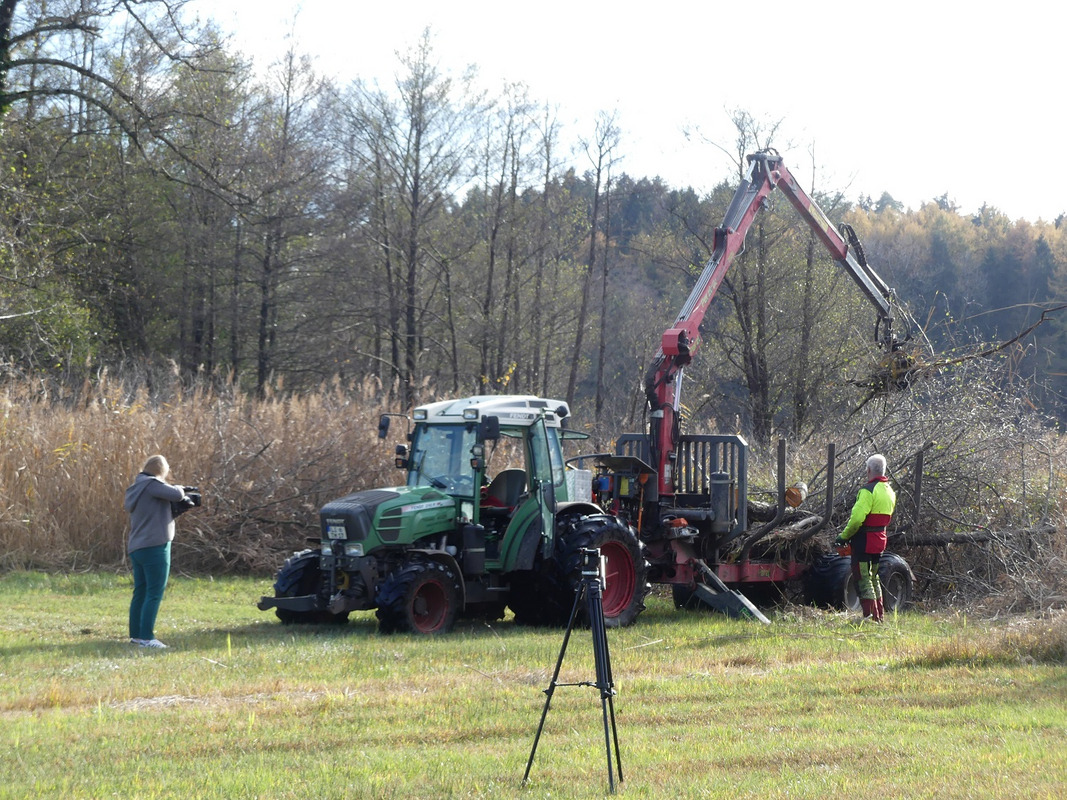 In einem altbekannten Vorkommen am Ufer des Degersees hat Daniel Doer schon länger Lebensraum verbessernde Maßnahmen für den Goldenen Scheckenfalter geplant. Im November wurde diese Maßnahme nun umgesetzt und Gehölze zwischen den Riedflächen am Seeufer und den Pfeifengras-Streuwiesen weggenommen. Das Ziel ist es, die Beschattung und den Laubeintrag, welcher wiederum zu einer Nährstoffanreicherung führt, zu reduzieren. Dadurch verbessert sich der Lebensraum des Goldenen Scheckenfalters, da die Raupen gut besonnte und kräftige Pflanzen des Teufels-Abbisses benötigen. Die Entbuschungs-Maßnahme und die erfreuliche Wiederausbreitung des Goldenen Scheckenfalters im Raum wurden in einem Beitrag bei Regio TV behandelt.