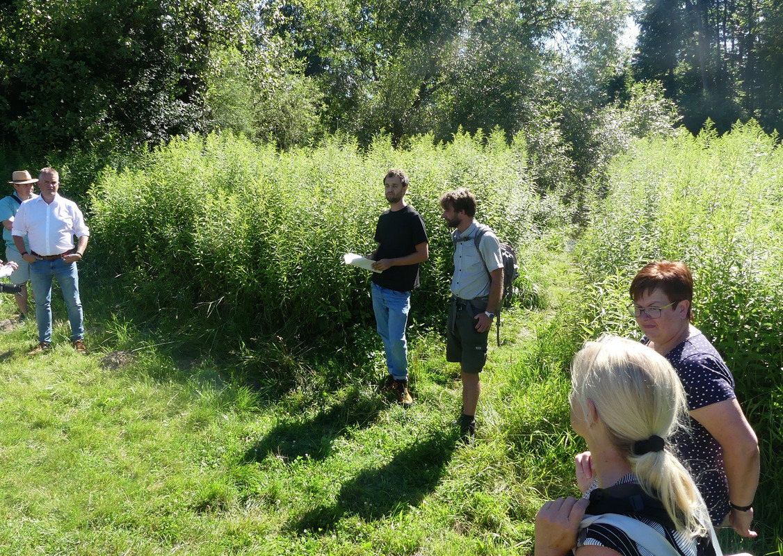 Es zeigt sich, der Aufwand für die Staudenknöterich-Bekämpfung ist nicht zu unterschätzen, weswegen auch eine weitere Ausbreitung verhindert werden sollte. Letztendlich bleibt es eine Einzelfallentscheidung, welche Technik - oder Kombination an Methoden - im jeweiligen Fall angewendet werden kann. Frau Dr. Hall, welche an der Universität für Bo-denkultur in Wien die Neophyten-Bekämpfung wissenschaftlich untersucht hat und die Veranstaltung mit vielen wertvollen Hinweisen aus der aktuellen Studienlage unterstützen konnte, zeigte auf, dass bei jeder Technik eine einmalige Anwendung nicht ausreicht, sondern mehrere Durchgänge, auch über einige Jahre hinweg, sowie Nachkontrollen der Flächen notwendig sein werden. Frau Barker, Veranstaltungsorganisatorin von Seiten der Stadt Friedrichshafen, dankte den Teilnehmern zum Ende des Termins für das große Interesse und regte einen Austausch von Kontakten und das Bilden von Netzwerken im gemeinsamen Bestreben gegen den Staudenknöterich an.