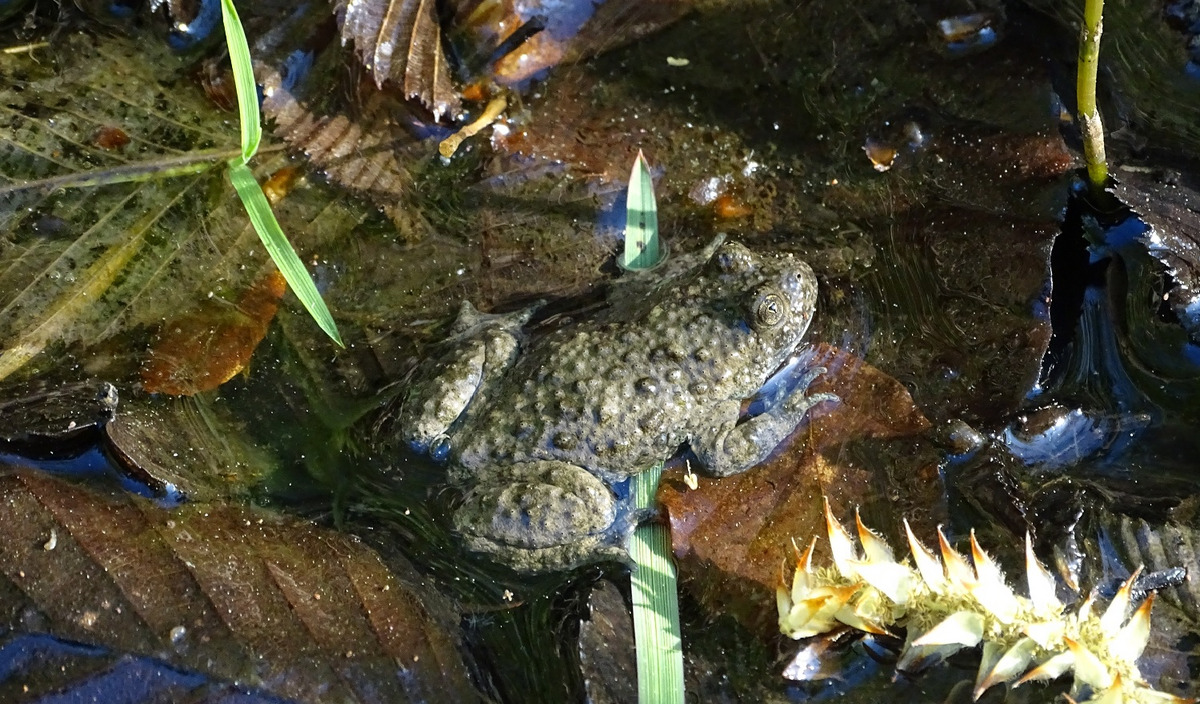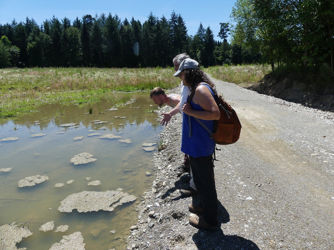 Der LEV Bodenseekreis stellt bereits umgesetzte Amphibienschutzmaßnahmen in Kressbronn vor, welche ebenfalls dem Biotopverbund dienen. Teile dieser Amphibien- und Biotopverbundmaßnahmen und die Schwierigkeiten, welche bis zur Umsetzung überwunden werden mussten, werden im Anschluss bei einer Exkursion ins FFH-Teilgebiet „Tunauer Strand“ vorgestellt. Hier ist die besondere Situation, dass die Gewässer in Nähe des Bodensees durch dessen Wasserstandsschwankungen natürlicherweise jedes Jahr trockenfallen und insofern keine Fraßfeinde der FFH-Arten Gelbbauchunke und Kammmolch vorkommen können. Zunächst wurde mit Entbuschungen zur Lebensraumverbesserung der Gelbbauchunke begonnen, um die Besonnung der nur im Frühjahr und Sommer Wasser führenden Senken zu verbessern. Vor vier Jahren wurde dann im Rahmen des internationalen Projekts „Kleingewässer für die Bodenseeregion“ eine neue, zeitweise Wasser führende Senke angelegt. In dieser haben die Artenschutzprogramm-Bearbeiter erfreulicherweise schon im nächsten Jahr viele Kaulquappen von Gelbbauchunken und Laubfrosch finden können. Eine noch offene Frage ist, ob in einer natürlichen, vor vielen Jahren von Gebüsch freigestellten und komplett schilfbestandenen Senke wegen der besonderen Situation am Bodensee trotz des Schilfs auch Unken erfolgreich reproduzieren können. Hier haben in den letzten beiden Jahren ein paar kleine Maßnahmen stattgefunden. In diesem Frühjahr wurde schließlich mit einem ausgewachsenen Männchen des Kammmolchs die dritte FFH-Amphibienart am Tunauer Strand nachgewiesen, so dass die weiteren Aufgaben im Amphibienschutz vor Ort nicht auf sich warten lassen.