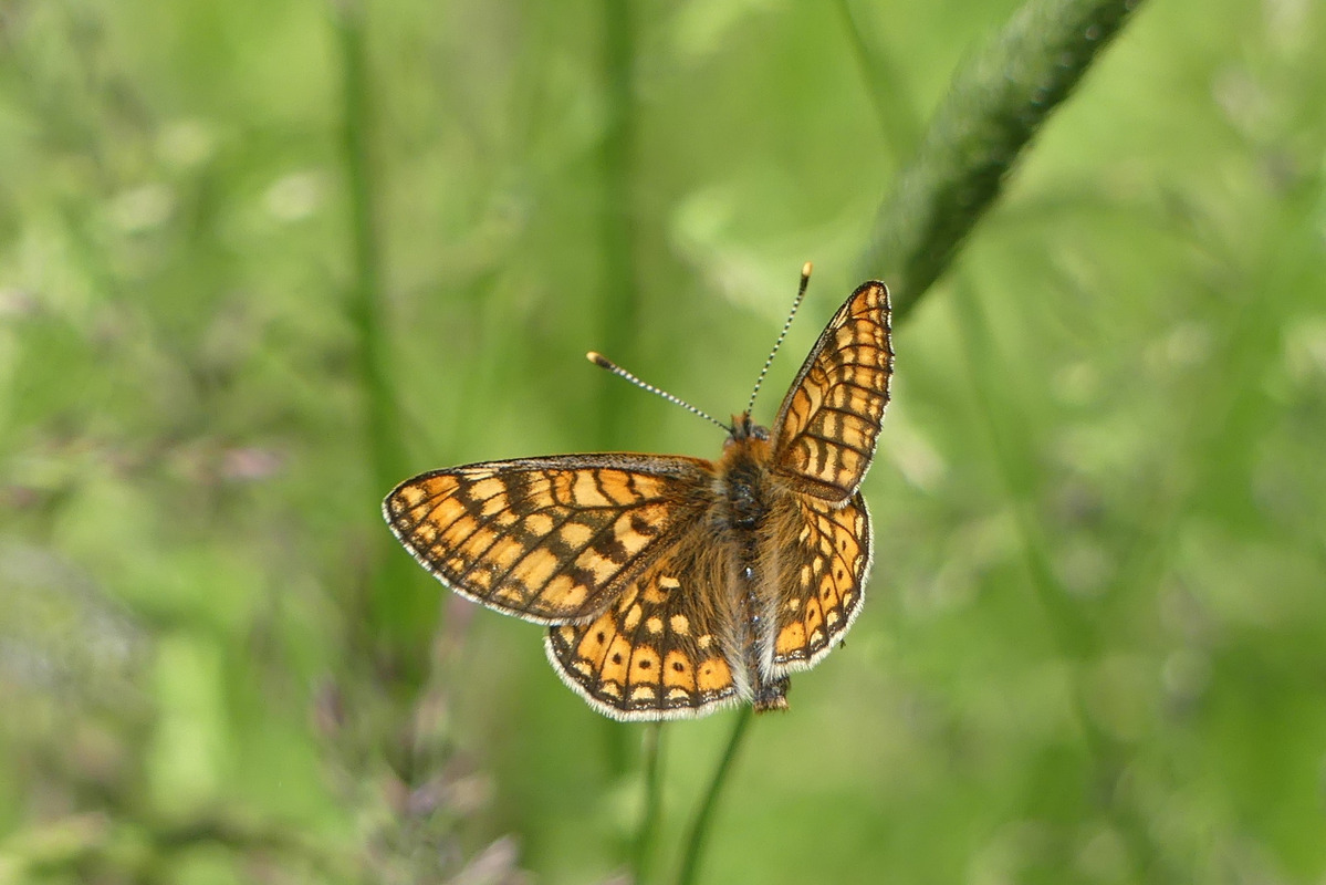 Mitarbeiter des LEV Bodenseekreis und des Artenschutzprogramms (ASP) des Landes konnten die europäisch geschützte und stark gefährdete Schmetterlingsart Goldener Scheckenfalter im Sommer 2022 in vielen neuen Gebieten nachweisen.