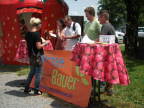 Die Geburt von 2 Kälbern war die Attraktion der Gläsernen Produktion am Sonntag 14. Juni 2015 auf dem Winkelhof in Heiligenberg - Steinsbrunn. Das war mehr, als die Familie Duelli planen konnte. Sie wollte allen Interessierten ihre Milchproduktion zeigen und die Erzeugung regionaler Lebensmittel dem Verbraucher näher bringen. Hierfür wurde extra aus der eigenen Milch bei der „Sennerei auf Achse“ Käse hergestellt. Tipps und Tricks für die Verarbeitung der Milch in der eigenen Küche gaben Gerlinde Heumesser und Dr. Kerstin Gröll vom Landwirtschaftsamt Bodenseekreis. Wer nicht so lange warten wollte, konnte sich schon mal einen Joghurt beim Stand der OMIRA holen.