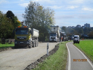 Auf der K 7712 wurde auf dem Streckenabschnitt zwischen der Einmündung zur L 326 bei Prestenberg bis zur Kreisgrenze Ravensburg auf einer Länge von 1.650 Metern der bituminöse Aufbau, bestehend aus Asphalttrag- und Deckschicht erneuert.
